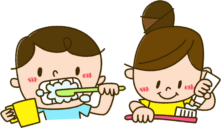 3歳くらいになったら幼児用の歯ブラシを使い、自分で磨く練習を始めましょう。全体をまんべんなく磨くことができたら、たくさんほめてあげてください。グチュグチュペッができるようになったら、フッ素配合の歯磨き剤を使うこともむし歯予防に効果的です、家族みんなで歯磨きの時間を共有して習慣化していきましょう。